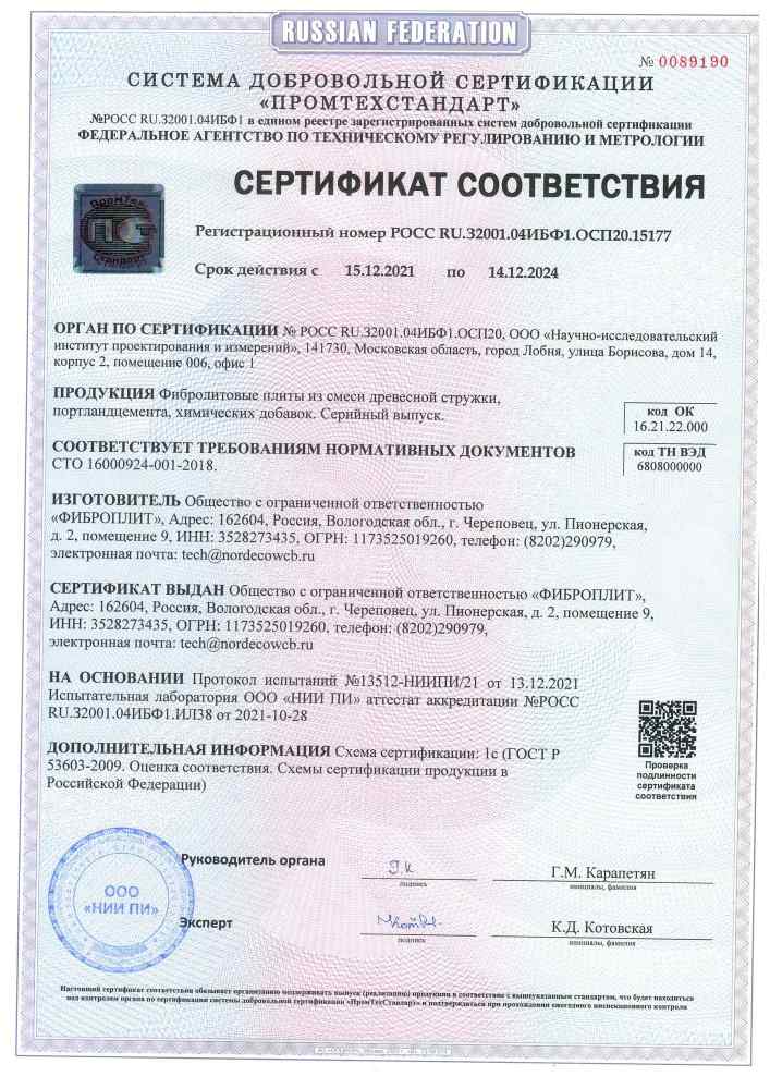 Фибролитовая плита Nordeco ФП 450-25С 1200х600х25 средней плотности на сером цементе