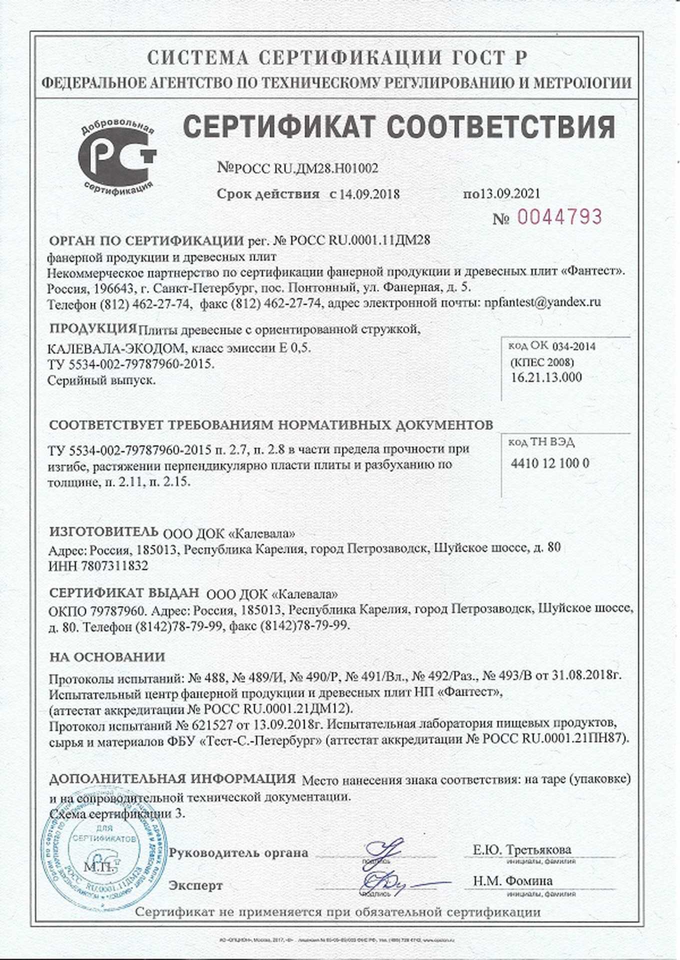 Плита OSB-3 (ОСП) Калевала ЭкоДом 12х1250х2800 мм
